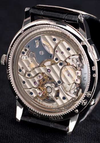 飛行陀飛輪超薄大師系列三問腕錶搭載積家純手工製作、組裝和修飾的機械自動機芯Calibre 362。這款厚度僅4.8毫米的機芯匯聚了大量創新技術,還體現了積家歷史性懷表悠久的高貴傳統。機芯毛坯和表橋由鎳銀製成,這種著名的銅鎳鋅合金可以保持持久華麗的光澤。一如頂級制表的精美做工,各個表橋以日內瓦波紋(Côtes de Genève)裝飾,純手工製作的倒角(包括複雜的傳統內部倒角),對機芯外觀的細節修飾彰顯表廠悠久的歷史傳統。