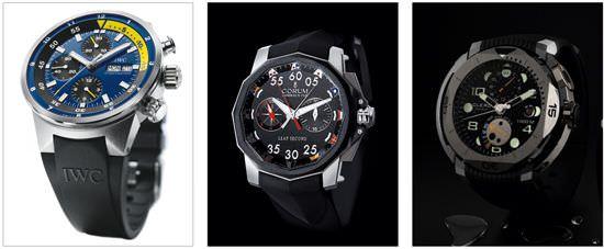 其它的新款潛水運動手錶還有橙色的Doxa Sub 5000T,Ulysse Nardin的 Maxi Marine Diver Chronograph,Tutima的Pacific 300米,全新的Clerc Hydroscaph (1000米防水),Eterna KonTiki Anniversary新品,Seiko 精工的Velatura 200M Dive Chronograph和Aquanautic Sub 2 Diver。