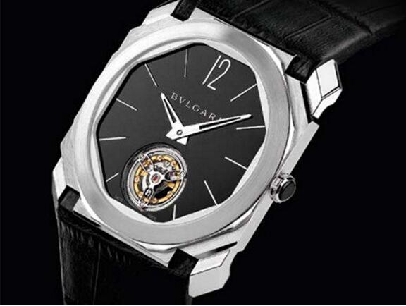 2014 年寶格 Bvlgari 麗一鳴驚人的Octo Finissimo 陀飛輪薄度驚人,結構上也採飛行陀飛輪以儘可能壓縮空間。