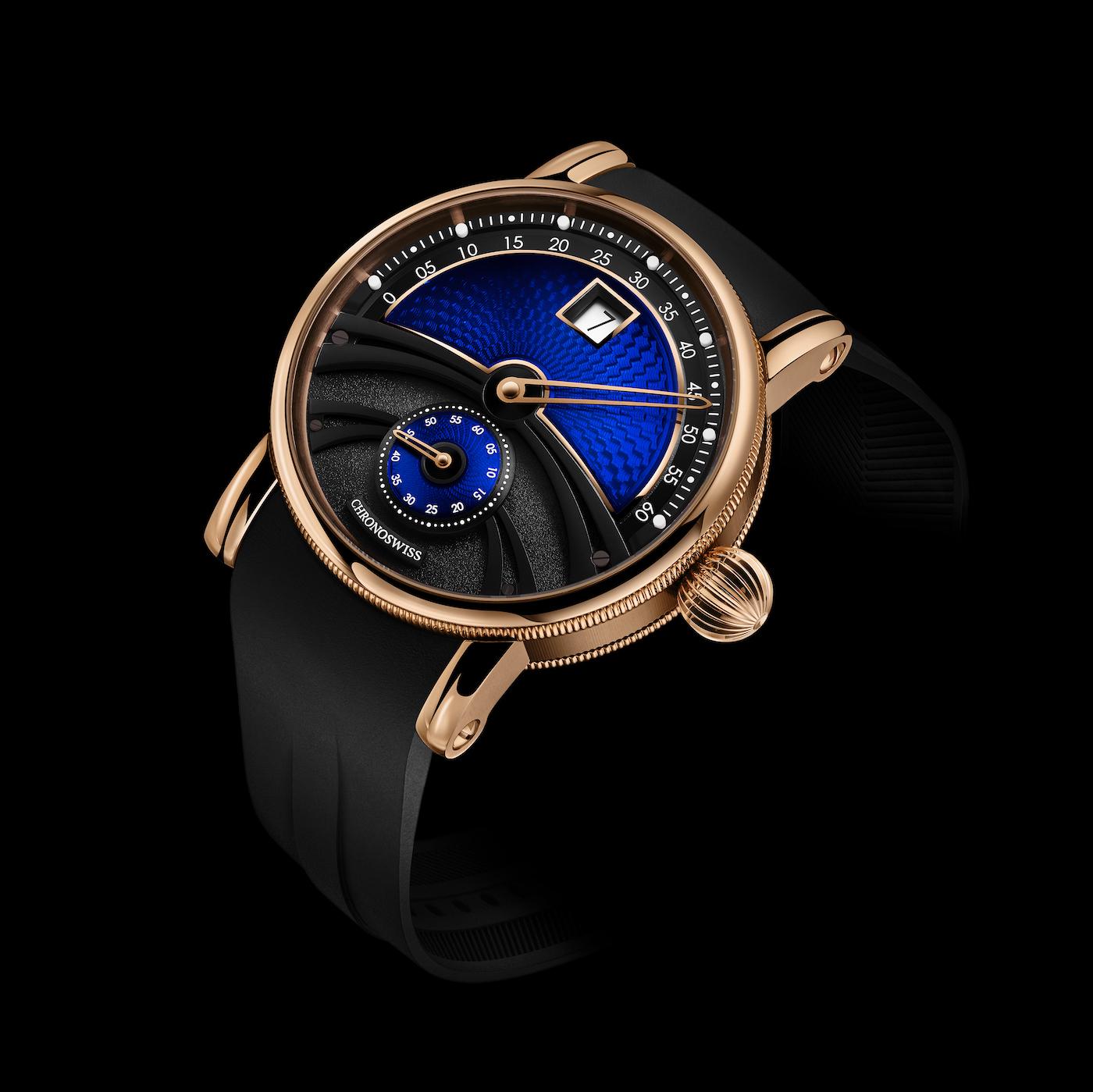 瑞寶保留了原版Delphis的雙重複雜功能設計。首先,數字跳時顯示在12點鐘位置的專門窗口中。其次,在中心位置,寬大的逆跳分針掃過180度的分鐘軌道。最後,獨立的小秒針顯示部分位於6點鐘位置,占據了錶盤的下半部分。