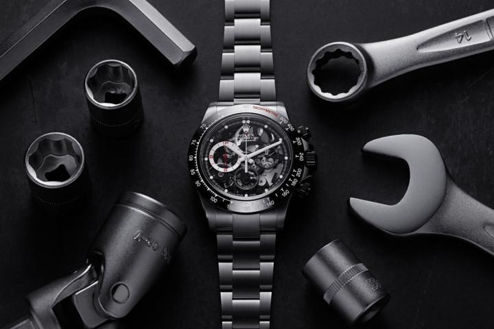 Daytona 「La Barrichello」採用的基礎是上一代的迪通拿116520,這款作品在2016年勞力士推出陶瓷圈鋼殼的116500LN後已經停產,所以現在反而收藏價值提高了。Barrichello在設計階段曾和Artisans de Genève提到,他想要自己專屬的Daytona看起來更有精密機械的味道,如果拿其他手錶品牌來比喻,Barrichello心裡想要的大概是類似像HUBLOT或RICHARD MILLE那種開面設計的複雜手錶,所以這也決定了Daytona 「La Barrichello」最終呈現的感覺。