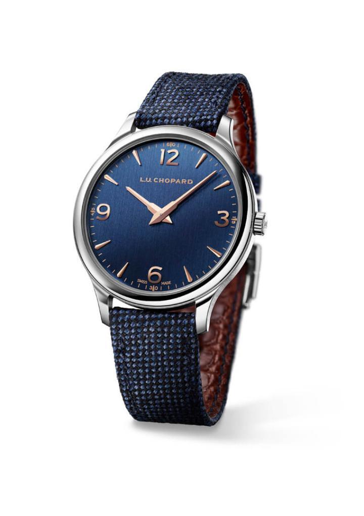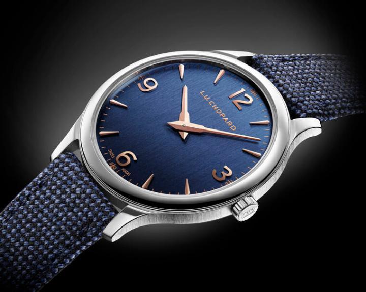 藍色雖然不能說是多麼罕見新奇的顏色,但它過往被應用在腕錶上的頻率並不像現今有愈來愈高的趨勢。藍色除了是三原色其中一色之外,它所代表的意義與精神往往也非常能夠受到消費者認可,例如它能讓人感到寧靜、沉穩、高尚、希望與理智⋯⋯等,而且藍色不像白色或黑色永遠都只有一種面貌,依據色澤深淺以及與其他顏色的調和,它還可以衍生出天藍、寶藍、湖水藍、紫藍等各式各樣的色調,因此藍色向來也是一種男女接受度都高的顏色,無論男士或女士佩戴藍面腕錶都不會讓人覺得突兀,或許這也和近年表壇愈出愈多藍面表有一定程度的關係。2019年各品牌創作藍面腕錶的頻率還是很高,以CHOPARD蕭邦而言,藍面可說貫穿了他們家不同類型的作品,包括女表、男表、正裝表與運動表,藍色的多元面向透過不同系列的演繹,展現出各有千秋的視覺魅力。