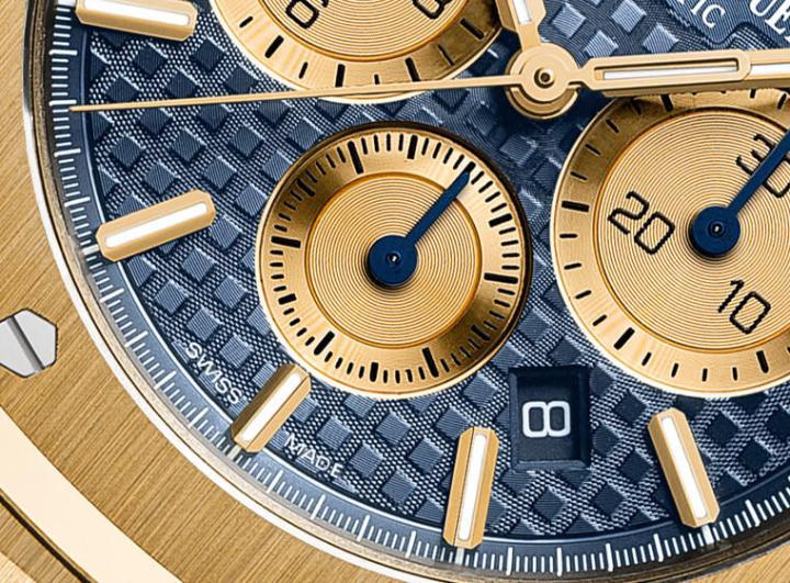 AUDEMARS PIGUET愛彼前兩年改版了皇家橡樹計時碼錶,這次的新版大舉導入了雙色貓熊面,細節處也有若干微調,討喜的設計加上討喜的款式,展現銷售主力的氣勢。雙色面盤是新版的一大賣點,但其實舊版並非沒有雙色面,只是款式較少,宣傳上也不如這次這麼着力,新款細節處的修改最重要的就是加大了左右兩個計時盤的尺寸,同時縮小了下方的小秒盤,實測結果放大的約多了1.5%,縮小的則是少了將近4%。