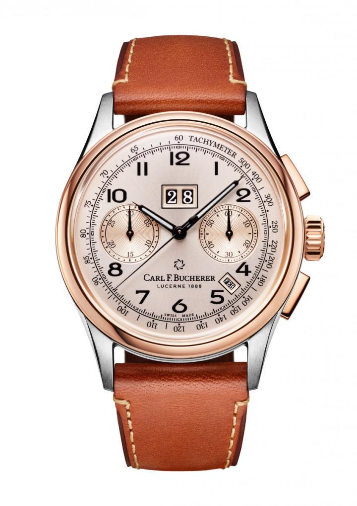 18K玫瑰金、不鏽鋼材質/CFB 1972 自動上鏈機芯/時、分、小秒、大日期、月份顯示/年曆功能/計時碼錶功能/藍寶石水晶鏡面/防水30米/表徑41mm/限量888隻/參考價:82,000 RMB