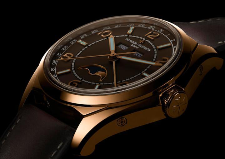 另款Fiftysix®全日曆手錶的功能更齊全,因為它的面盤上同時顯示日期、星期、月份以及月相,月相的精密齒輪結構使其每122年才需調校一次。這款表的面盤同樣採用分區設計,江詩丹頓利用不同的打磨工藝營造出迷人的光影效果,面盤六點方向的扇形窗中,藍色夜空背景讓玫瑰金月亮看起來更高貴清晰。