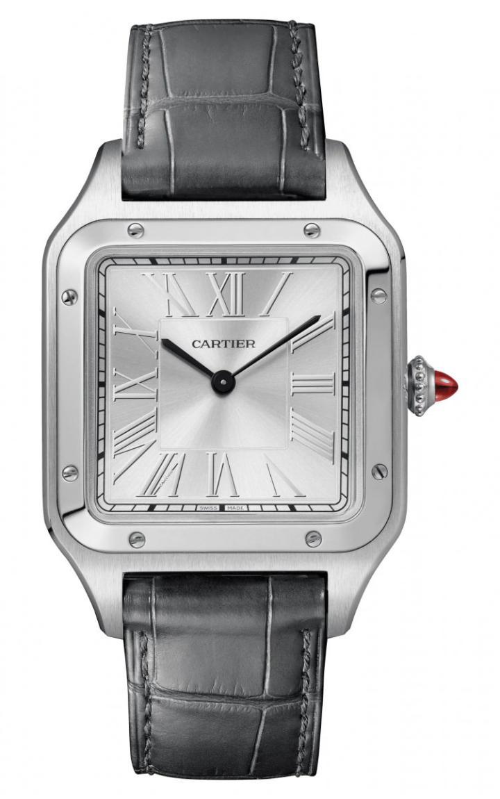 Santos-Dumont「Le Brésil採用鉑金表殼、銀色面盤上點綴12個拋光金屬羅馬數字,搭配劍形指針和紅寶石上鍊表冠,精細的表面拋光或磨砂處理與斜面表緣散發珍貴氣息。表背鐫刻山度士-杜蒙的第一架飛行器「Le Brésil」的設計圖,根據這位飛行員,這架1898年創造的飛行器是「最小」而且「最美」的。「Le Brésil」於1898年7月4日首次飛上青空;繼此之後,1898年至1909年之間誕生了一系列編號1至22的熱氣球,體現亟欲跨越重力法則的多番嘗試。