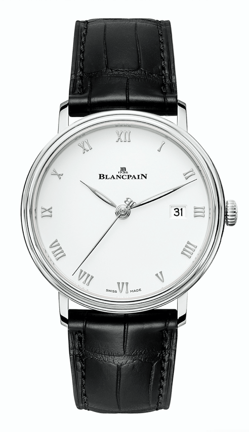 純白或蛋白石色的面盤分別搭配於不鏽鋼或玫瑰金表殼內,面盤上以人手鑲貼28片黃金紋飾以建構出迷人的羅馬數字。時分針被塑造成鏤空鼠尾草葉形,至於纖細的秒針則在末端置上品牌創辦人Jehan-Jacques Blancpain的姓名字首。3點鐘位置的日期顯示不單豐富了時間資訊,其顯示窗口的大小也經過精心計算,以確保面盤獲得最佳的視覺平衡之餘,又兼顧到其易讀性。