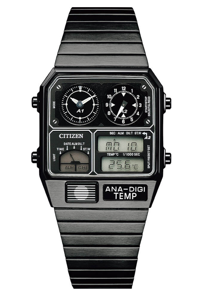 西鐵城CITIZEN曾在1982年時推出兼具指針顯時(Ana)、數位顯時(Digi)及溫度計測(Temp)的手錶作品,在當時復古未來主義的時代氛圍下大受好評。
