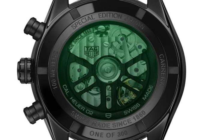 TAG HEUER泰格豪雅與日本文化連結,發表日本限定Carrera H02湛黑版限量計時碼錶,湛黑的表殼採用獨特的萌木色(moegi-iro)表背——也就是綠色的藍寶石鏡面,在整隻表都是黑色的色調中,呈現綠色透明的底蓋顯得特別顯眼。而雖然這款表是日本限定,但近期品牌也少量引進台灣,有興趣的表迷不必遠渡重洋就有機會入手日本限定款式。