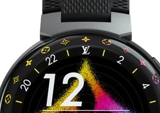 路易威登第三代Tambour Horizon智能表面盤外緣仍舊保有前兩代設置的24小時刻度,目的是強調品牌旅行的基因精神,此外品牌還在24小時刻度上額外加上24顆呈現Monogram花紋的LED燈,當腕錶開機或收到通知時,這些花紋LED燈就會發出閃爍的彩光,展現令人目眩神迷的畫面美感。