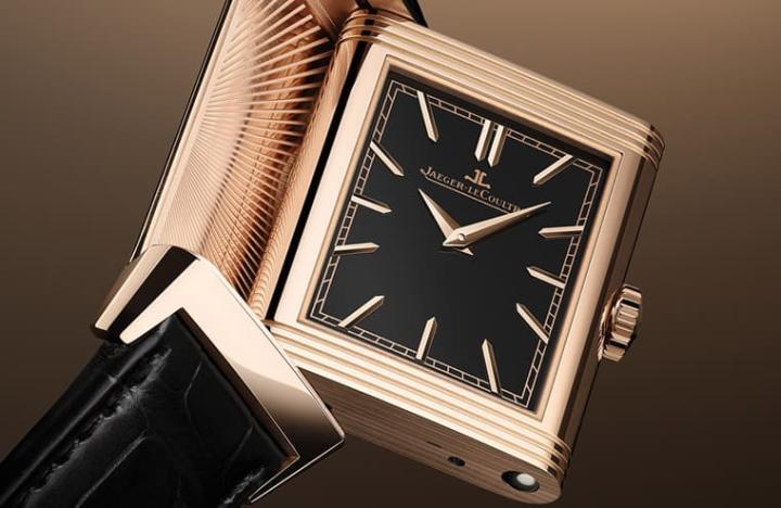 表款面盤與表背相同的是積家同樣以黑色大明火琺瑯裝飾,素色背景搭配刻面鑲貼時標、軌道式分鐘刻度及太子妃式指針等元素,包藏在玫瑰金表殼之中盡顯高雅精緻的風格。