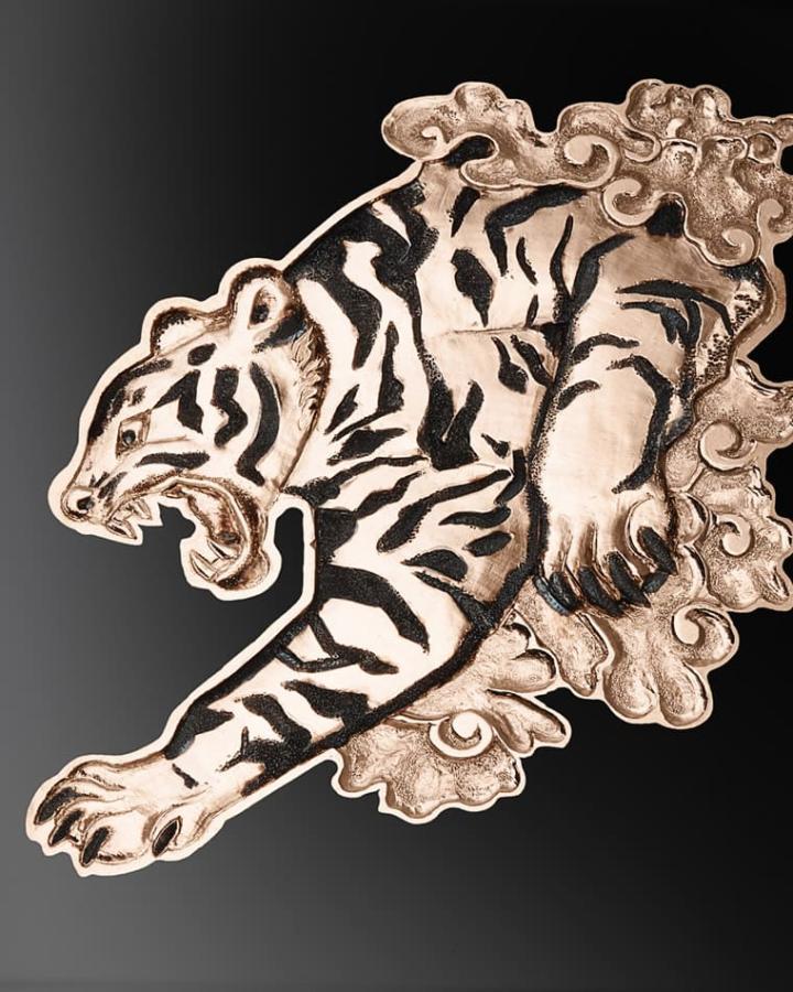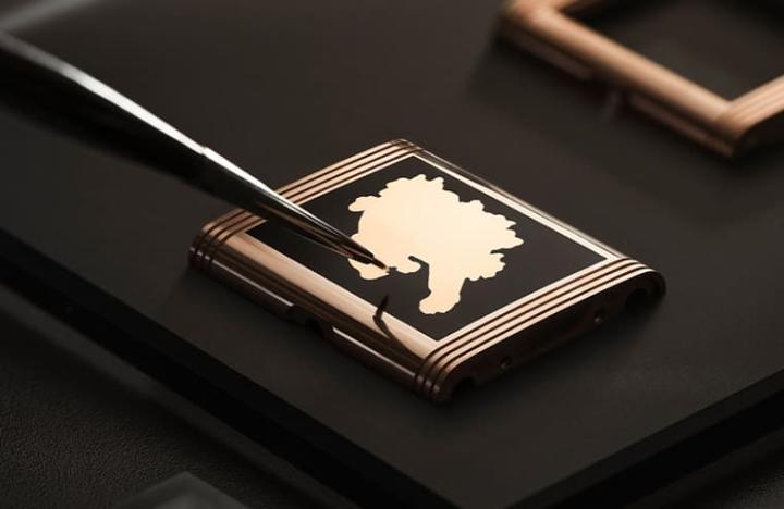 積家此次採用玫瑰金材質製作翻轉系列琺瑯虎年紀念表的表殼,表背另以黑色大明火琺瑯先行鋪陳出猛虎出閘的背景,至於主角——老虎則是用金雕工藝展現,老虎金雕的「皮毛」經過拋光潤飾,並設有磨砂處理的鍍銠條紋,可捕捉並折射光線,獨特的光影效果令老虎氣勢更加懾人。品牌這次運用的金雕屬於「模雕」(Modelled Engraving)工藝,過程中雕刻師需以不同尺寸的雕刻刀逐步雕鑿金屬,一般做法是直接在空白的金屬表面上雕刻,但在創作翻轉系列琺瑯虎年紀念表時則需要在大明火琺瑯塗層表面上雕刻圖案,從中提升了雕刻過程的難度,也因此每製作一款翻轉系列琺瑯虎年紀念表的表殼金雕圖案便需要花上55個工時,突顯手錶成品的得來不易。