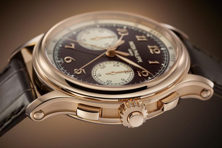 此一優異的光榮傳統,如今在全新的 5370R-001 雙秒追針計時碼錶上被賦予全新的樣貌。腕錶首度以玫瑰金表殼亮相,溫潤的金色光澤映襯着咖啡色大明火琺瑯錶盤,如焦糖般深沉、又如餘燼般閃爍的色調令人着迷。每一面錶盤都經攝氏 850 度高溫反覆窯燒,層層堆疊出的光澤宛如時光的流轉,讓人不自覺地放慢呼吸,只為凝視它的深度。米色內填琺瑯流速計刻度與小秒盤細膩交錯,結構清晰而和諧,成就出一種既古典又現代的平衡感,時間於此被收斂成一場優雅的競賽。