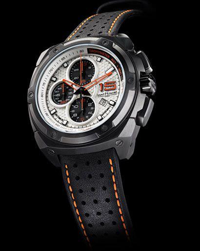 配置兩款獨特的錶帶 - 黑色蜂巢造型橡膠錶帶和孔狀特種皮革橙色縫線錶帶 - Haussman Forty 7-24已經準備好去面對任何的挑戰。