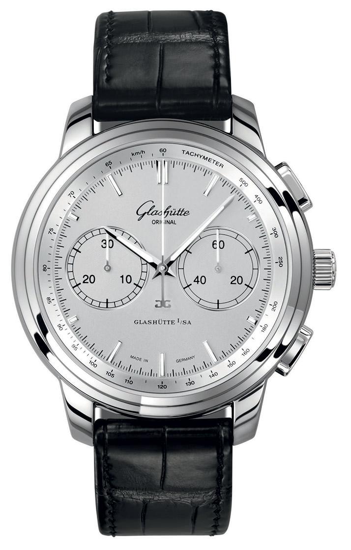 Senator Chronograph XL 男士腕錶採用了德國銀面盤,夜光矛形的白金中央時分針、中央計時秒針、格局平衡的30分計時盤和小秒盤、以及表徑44mm的大型不鏽鋼表殼,環繞着面盤的黑色測速針包圍着洗黑的分鐘刻度,並搭配德國銀的時標,而不鏽鋼表殼、錶冠和按把分別採用了拋光和霧面相對比的打磨。Senator Chronograph XL同樣搭載格拉蘇蒂原創39-34機芯,採用自動上鏈,並具備40小時動力儲存。為了確保它的經典原創性格,機芯採用了各種具備格拉蘇蒂原創特徵的設計,透過藍寶石水晶底改便能一目了然。其中包括了四分之三 夾板、鵝頸式微調、格拉蘇蒂螺紋和雙放射的裝飾,以及擁有21K金擺輪的鏤空自動盤,彰顯儒雅紳士風格。