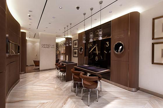 每家沛納海專賣店內都設有一面大掛鍾,旨在突出沛納海腕錶的最顯著特徵之一:「三明治」結構錶盤,錶盤由兩個疊加的表面組成,Super-LumiNova夜光時標和數字讓潛水員在弱光環境下看得更清楚。