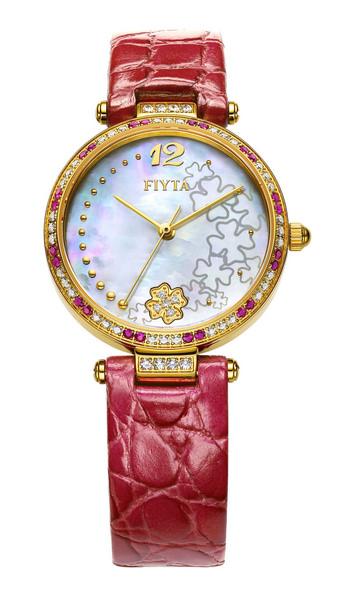 飛亞達心弦系列女表DLA0590.GWRS天然貝殼盤面,擁有珍珠般的光澤和變幻的色彩,在陽光下,熠熠生輝; 表圈與表耳鍍黃金色,鑲嵌鋯石,高貴典雅,渾然一體;表耳造型設計新穎,也更加舒適貼腕。四葉草造型裝點盤面,成就整體的美感和設計感。錶針設計,匠心獨運,表現女性的婉約之美。