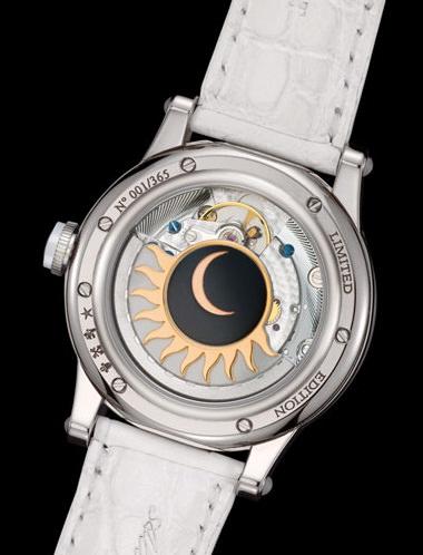 在朗朗夜空的包圍下,隕石製成的月亮在夜空中閃閃發亮,令人眼花繚亂。這也是世界上第一枚搭配星際鑽石的腕錶。