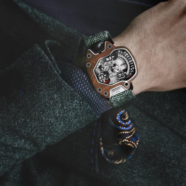 URWERK創辦人之一Martin Frei表示:「UR-110終極版的構思過程及創新意念往往由我與Felix之間的討論而來。我們希望此系列的新成員能以出人意表的姿態出現。很多人認為我們的設計已經很獨特,但我們希望可以更進一步。我們選擇了從未使用過、高貴而美麗的材質──木材。表圈由最堅硬且密度高的木材之一烏木製成,對我們而言是一大挑戰。將此木材與UR-110的製作完美而精準地結合是一項幾乎不可能的創舉,然而,征服不可能本來就是一個叫人難以抗拒的念頭──叫我們義無反顧!」