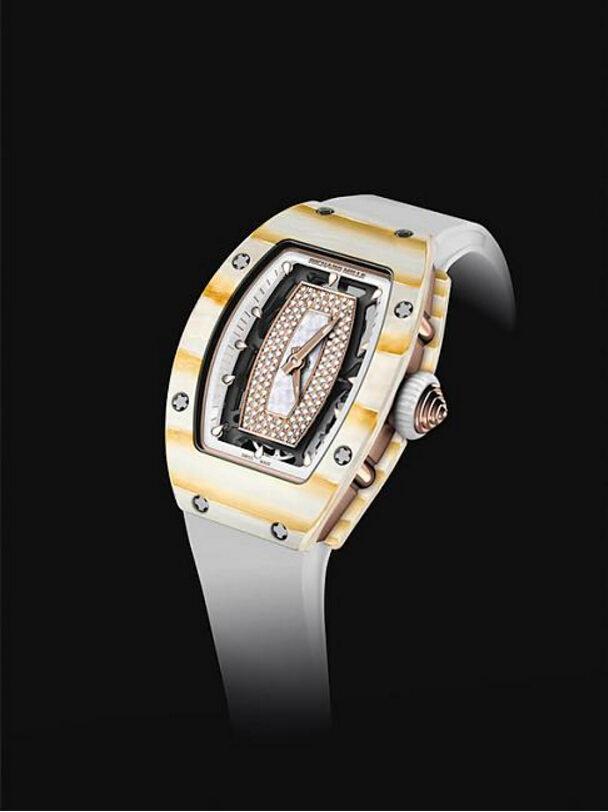 Gold Quartz-TPT®及Gold NTPT碳化物將獨家應用於RM 07-01及RM 037女裝腕錶,每一枚作品均呈現獨特的車工。繼鈦合金、陶瓷及藍寶石表殼版本後,兩款新作再度將技術加工材質應用於女裝腕錶中,進一步豐富其系列的面貌。