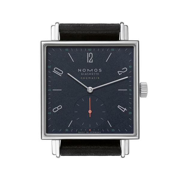 儘管指針始終遵循圓形軌跡不斷運動,但有時佩戴方形腕錶才更為帥氣,NOMOS經典方形腕錶系列是其中一員。新款Tetra neomatik更大、更薄,並搭載新一代自動機芯DUW 3001, 機芯厚度僅有3.2毫米,纖薄至極,由於採用先進的研發成果和製作工藝,走時誤差降低了一半,同時效能和精度大幅獲得提升。纖薄的DUW 3001機芯賦予Tetra neomatik纖巧的輪廓和精準的走時。33毫米的邊長和全新設計的錶盤進一步襯托出這枚經典時計的運動摩登風範,相比同系列的手動上鍊表款更具陽剛魅力,錶帶則保留了優美耐用的科爾多瓦馬皮錶帶。新款Tetra neomatik共推出兩個版本:一款以青藍色細節搭配白色電鍍銀錶盤,一款以綠色細節搭配深藍色錶盤。