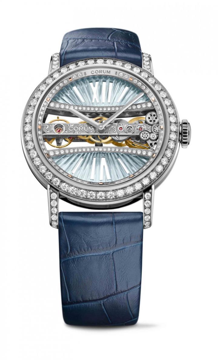 Corum首席執行官Jérôme Biard表示:「Golden Bridge Round 39金橋系列圓形蕾絲鑽表華美鑲工的秘訣別無其他,設計上秉持着珍貴材質更應該襯托於獨特非凡機械工藝的設計理念,尊重長方形機芯本身空靈輕盈的特性,不因珠寶光芒掩蓋過精巧橋狀機芯特色,與鑽石或彩色寶石相互輝映。」