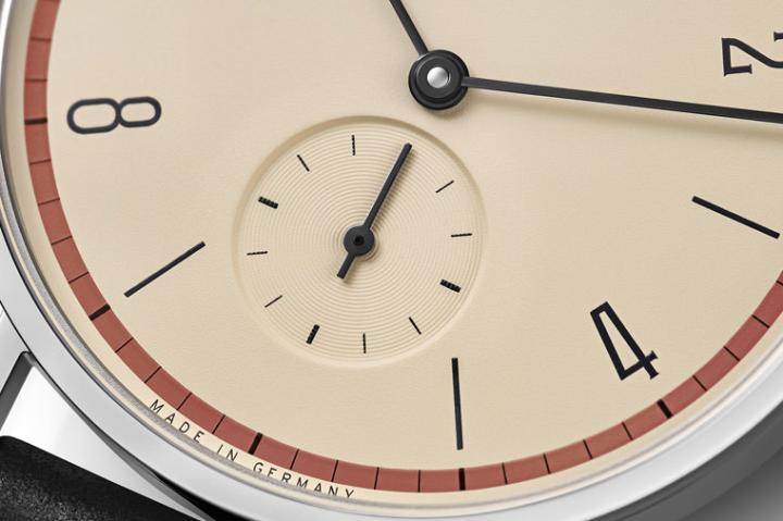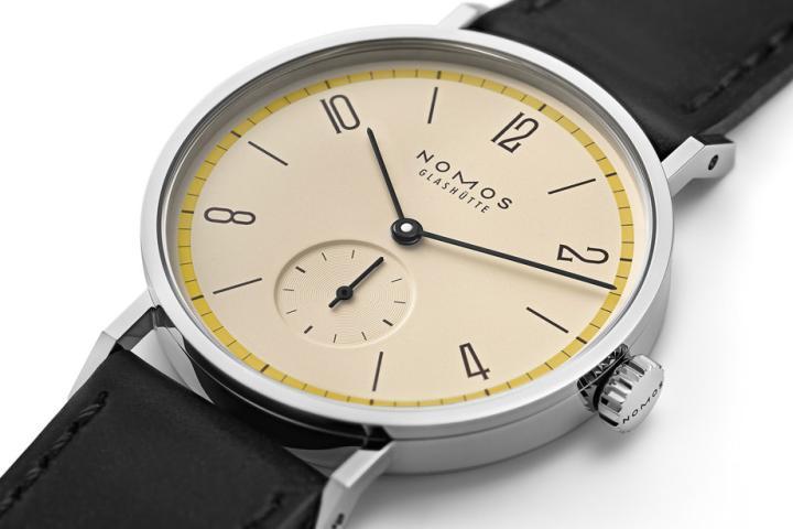 為了慶祝明年即將到來、包浩斯學院的100周年紀念,NOMOS以此作為主題將推出9款限量版腕錶,限量表是以NOMOS Tangente為基礎,共分成33毫米、35毫米和38毫米等三種尺寸,每種尺寸又各有三種面盤類型選擇。Tangente \"A Century Of Bauhaus」限量版均採用一種名為」Sketch Paper」顏色的面盤,顧名思義它帶點仿舊的米黃色,而每種尺寸又各有三種顏色的刻度環,分別是紅、藍、黃三原色,至於時標與指針則是黑色(時標部分採用轉印方式),簡約中不失個性,淋漓詮釋出包浩斯設計風格的精髓。