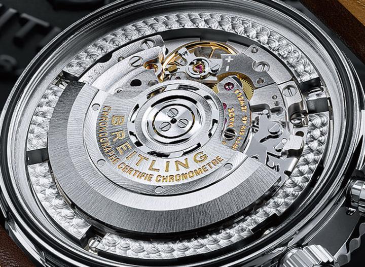 B03追針機芯在2017年首度問世,基本上就是在B01機芯上加裝追針模組,不過百年靈製作這枚機芯時有個特色,就是他們只用了28枚零件來製作追針模組,其中還包含兩項專利設計,比起其他家的追針機芯顯得更為精簡,也更有利於量產。2018年這款專賣店限量版表殼依舊用不鏽鋼材質製作,大小也維持在45mm不多不少,比起去年的褐色面盤,這款如今使用的是深灰色單色面盤搭配黑色皮錶帶,第一眼看起來雖然沒有那麼搶眼,但是比耐看和搭配性,它一點都不會輸人。