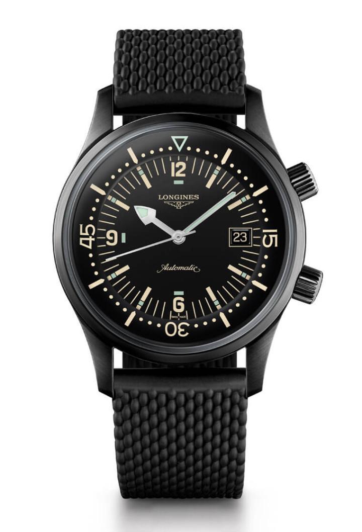 LONGINES浪琴潛水錶這兩年隨着浪鬼HydroConquest深海征服者系列推出陶瓷表圈,又再次炒熱了市場的人氣,原本深海征服者系列就已經是頗有口碑的入門級潛水錶之一,在加入陶瓷圈後,整體的品質和水準又再向上提升了一些(雖然入手門檻也跟着拉高了⋯⋯);不過除了HydroConquest系列之外,浪琴也還有另一支比較低調的潛水錶產品線,那就是Heritage的復刻潛水錶,這系列不純然是潛水錶的家族,舉凡正裝表、飛行表、軍表、潛水錶等應有盡有,如果說HydroConquest是浪琴現代潛水錶的代表,那麼Heritage自然就是喜歡復古風格的人尋找潛水錶時不容錯過的選項之一。2018年品牌推出了Legend Diver復刻潛水錶的改款,延續前一年度的復古設計,但是表殼改成PVD處理,以全黑的造型嶄新登場。