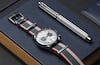兩條錶帶均採用100%永續材質製成 。 手錶和書寫工具被裝在特別設計的隨身袋 , 在一起承裝在精緻木盒中