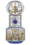 ... 一段旋律喚醒天文學家人偶 , 它先環顧四周 , 隨後指向其腳下的晝夜標識 。 接着 , 它舉起手臂指示月亮 , 並展示月亮在其前方弧形軌道上的運行路徑 , 最終回歸初始姿態 。 在第二段動作中 , 伴隨着由Woodkid創作 , 通過金屬音琴 ( metallophone ) 和Wah-Wah音管演奏的樂曲 , 天文學家人偶先以左臂 、 再以右臂指向頭頂的星辰 , 同時頭部也隨之轉動 。 第三組動作可按需觸發 , 也可提前24小時預設程序 , 天文學家人偶會在懸浮的時標刻度盤上指示時間 。 更複雜的是 , 小時和五分鐘時標以隨機順序進行 。 ...