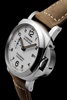 ... ( PAM01523 ) 或44毫米直徑 ( PAM01499 ) 兩款 。 錶盤設有數字及圓點時標 , 3點鐘方位設有日期顯示 , 而9點鐘方位的小秒針以沛納海深藍色呈現 , 與系列其他型號的裝飾細節一脈相承 。 Assolutamente棕色皮革錶帶不經化學程序加工 , 淺褐色撞色縫線飾邊完美呼應着錶盤上於黑暗中清晰顯示時間的Super -LumiNova ®夜光色澤 。 Luminor Marina 1950 3 Days Automatic Acciaio腕錶同樣備有直徑42毫米 ( PAM01392 ) 及44毫米 ( PAM01312 ) 兩款 , ...